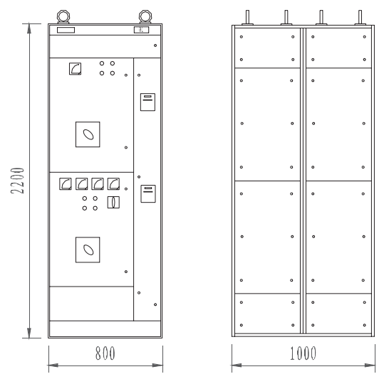 Şekil.3 Kontrol dolabının ve kapasitör dolabının genel boyutları