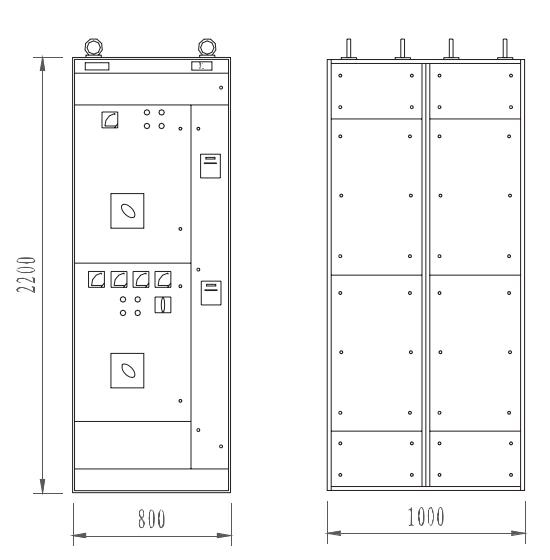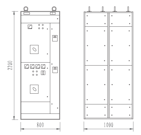 | Şekil.1 Busbar dolapı ve giriş dolapı] tür anahat boyutu |
