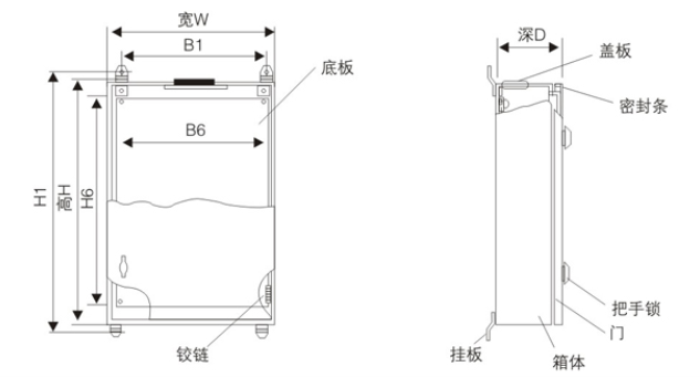 Yapısal diyagramı of JX F ile □□□/□□ "JX, duvara monte edilmiş kontrol kutusu anlamına gelir; koruyucu tip için F; Minge kodu: 1- koyu menteşeyi gösterir, 2- açık menteşeyi gösterir; H - dolap yüksekliği; W - dolap genişliği; D - kutu derinliği; Montaj yöntemi: R gizlenmiş, M açık, W açık"
